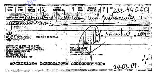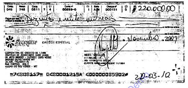 Na quinta fase da Operação Ararath, a mais emblemática até o momento deflagrada pela Polícia Federal (PF) em conjunto com o Ministério Público Federal (MPF) em maio do ano passado, 3 cheques totalizando R$ 1 milhão, emitidos pelo ex-ministro da Agricultura, Pecuária e Abastecimento, Neri Geller (PMDB) foram apreendidos na casa do ex-deputado José Riva (PSD). O ex-presidente da Assembleia Legislativa de Mato Grosso foi um dos presos naquela ocasião acusado de integrar um complexo esquema de lavagem de dinheiro que movimentou, segundo as investigações, mais de R$ 500 milhões nos últimos anos.