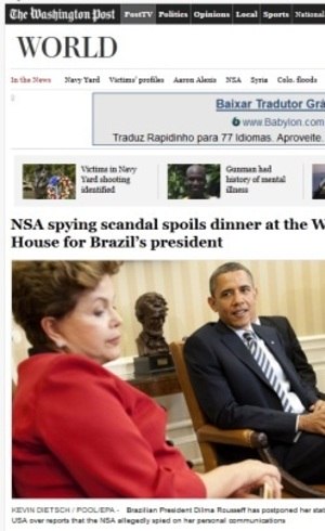 A mídia norte-americana não deu grande destaque para a notícia, mas o jornal The Washington Post publicou uma matéria explicando o motivo do cancelamento da viagem com o título “Escândalo de espionagem da NSA estraga jantar na Casa Branca da presidente do Brasil”.