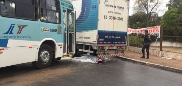 Mulher morre entre ônibus e caminhão na Fernando Corrêa